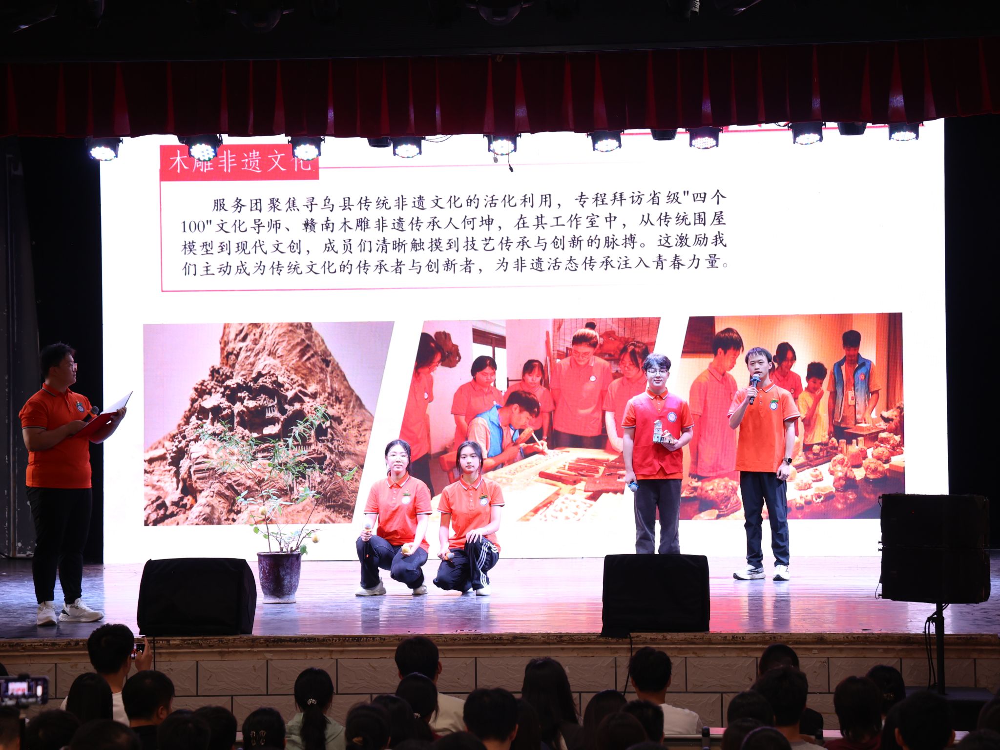 在交流分享环节,各实践团队代表依次登台分享了他们在本次暑期社会实践中的实践感悟与成长收获,生动展现新时代青年心系社会、勇于担当的责任意识和朝气蓬勃、奋发向上的青春风采。大会还表彰了“沪赣同心,青春向党”社会实践队等9支“优秀团队”、曾静华等21名“优秀个人”及赖泳等13名“优秀指导老师”。