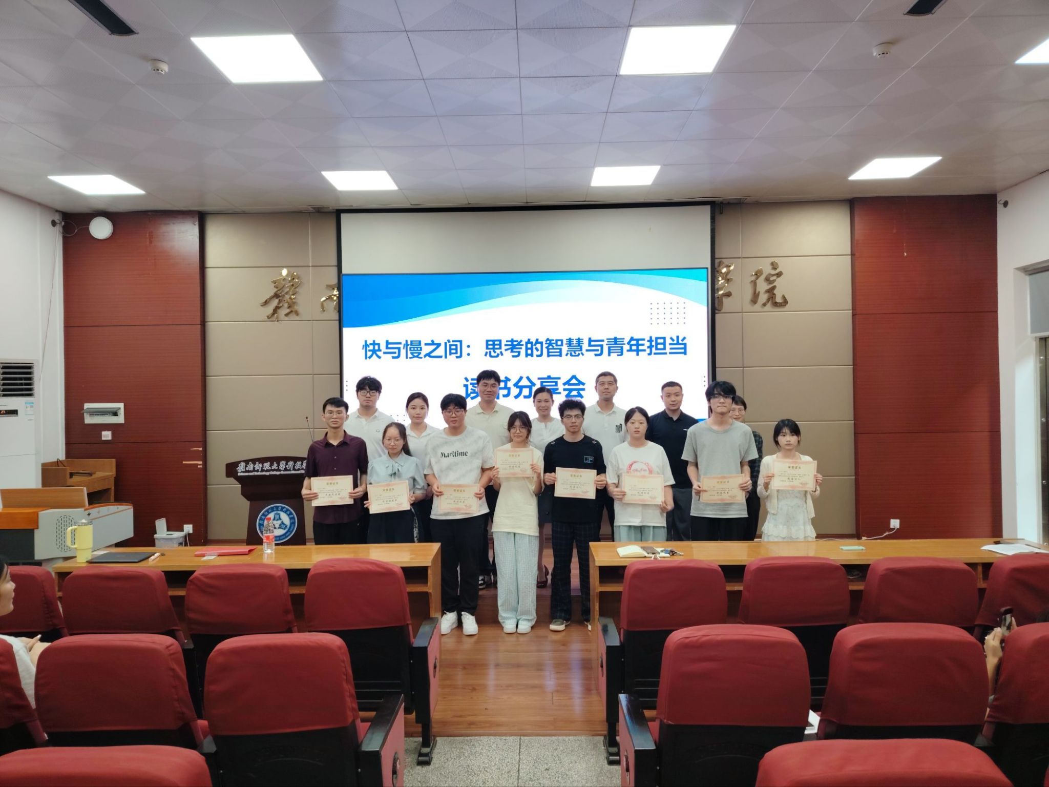 9月26日,经济管理系在图书馆科报厅举办“辩快慢思维 展青年担当”读书分享会。经济管理系负责同志及100余名师生代表参加。