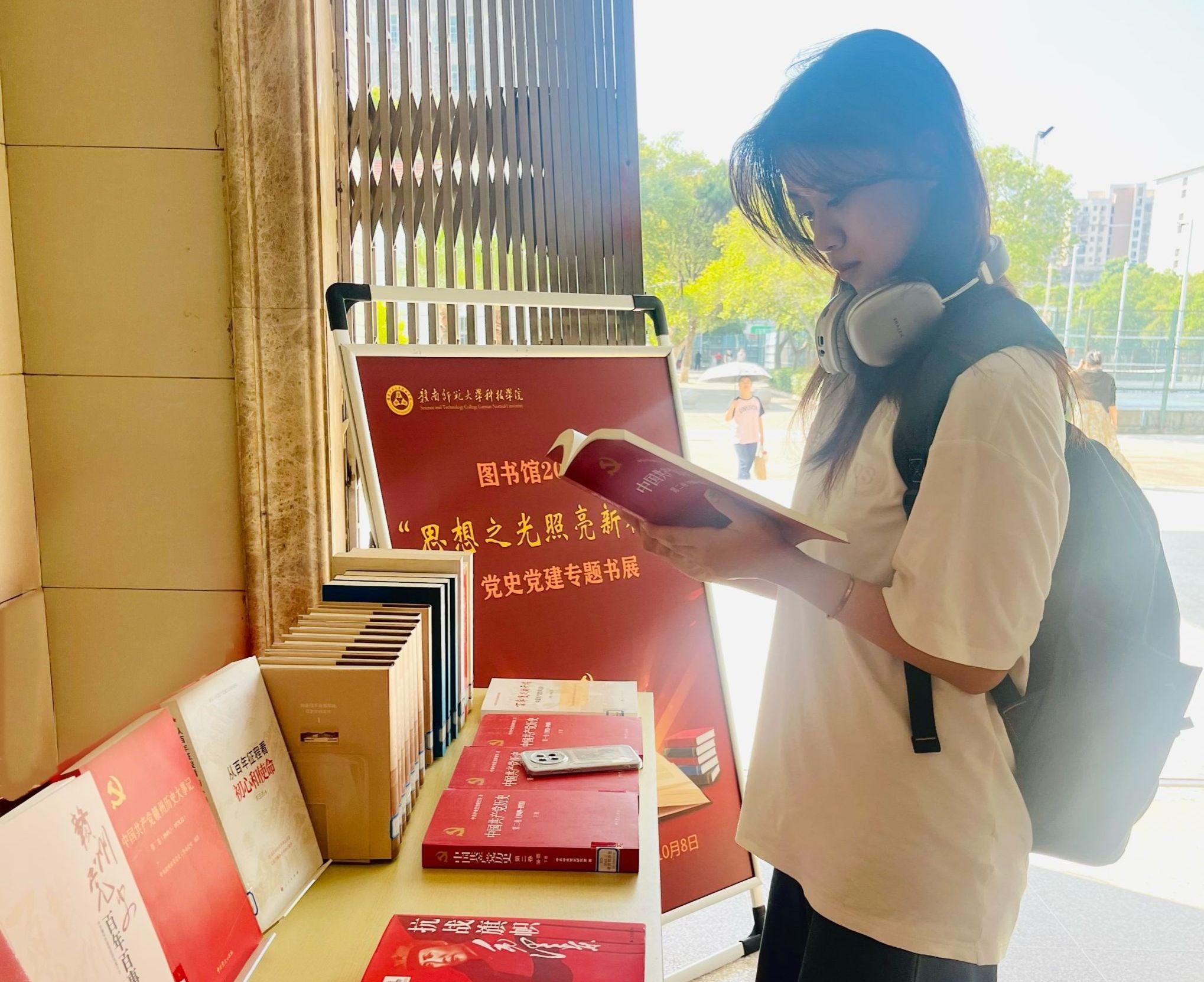 9月28日,图书馆在主教学楼及图书馆大厅举办“思想之光照亮新征程“党史党建专题书展。