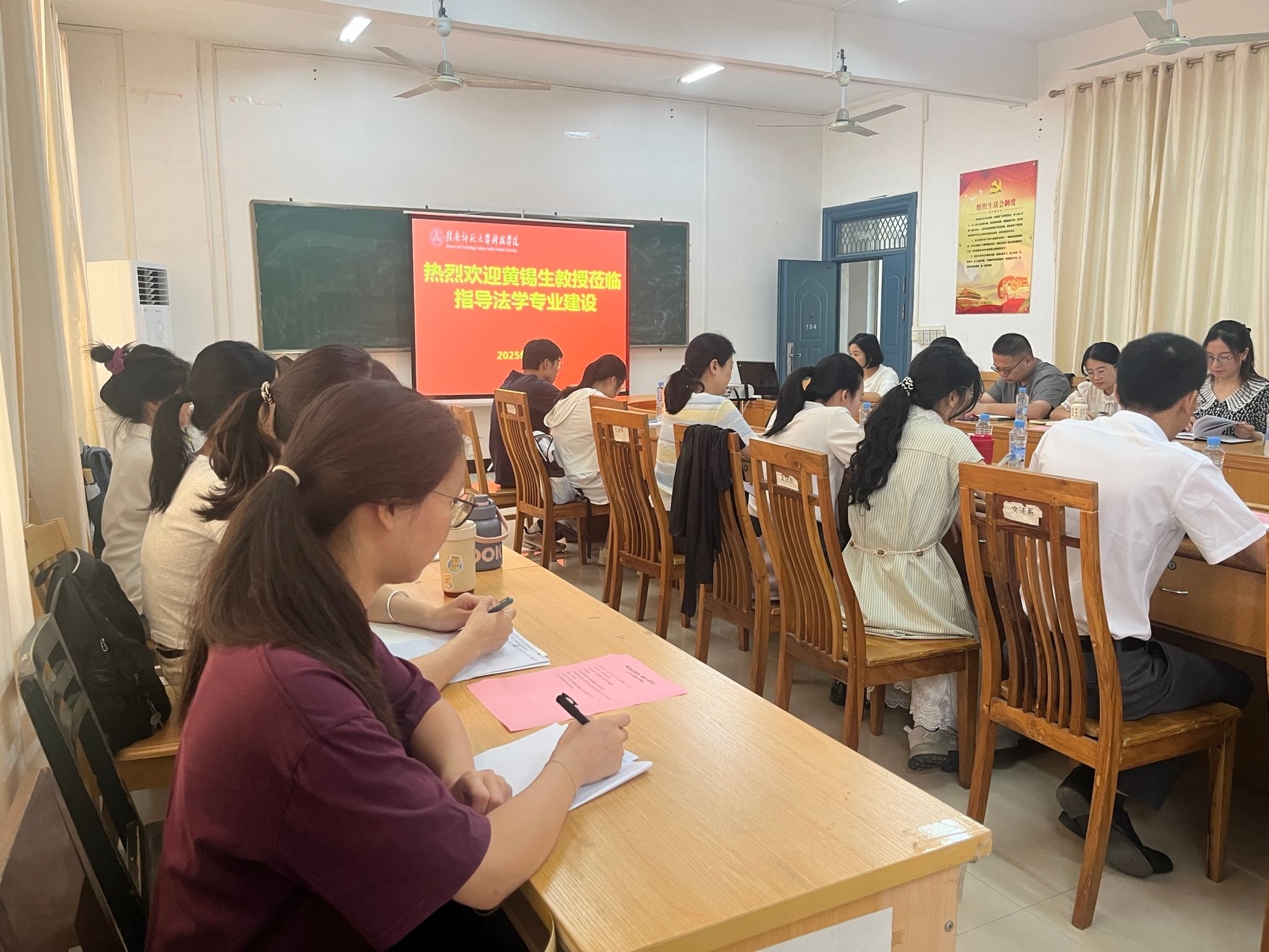 10月9日,文法系在一教楼104会议室举办“聚焦应用转型,凝练专业特色”法学专业建设专题研讨会。重庆大学法学院原院长、博士生导师黄锡生教授应邀莅院指导,会议由学院院长助理张珍荣主持,文法系全体教师及法学专业学生代表参加。