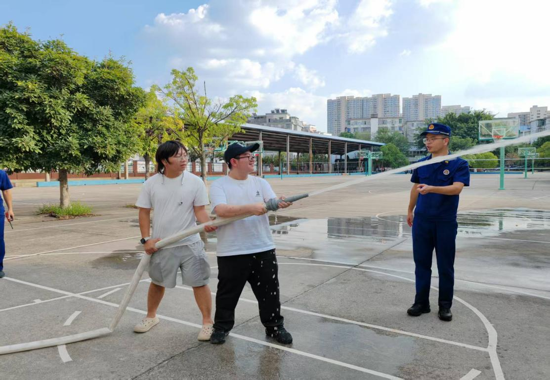 在实践演练环节,消防员进行专业示范和精准指导,参训学生在“零距离”感受和“沉浸式”体验中轮流操作灭火器材,成功扑灭模拟火源。演练流程紧张有序,学生们操作规范、应对得当,将理论知识与实践技能深度融合,有效掌握了消防器材的使用方法和应急处置流程。