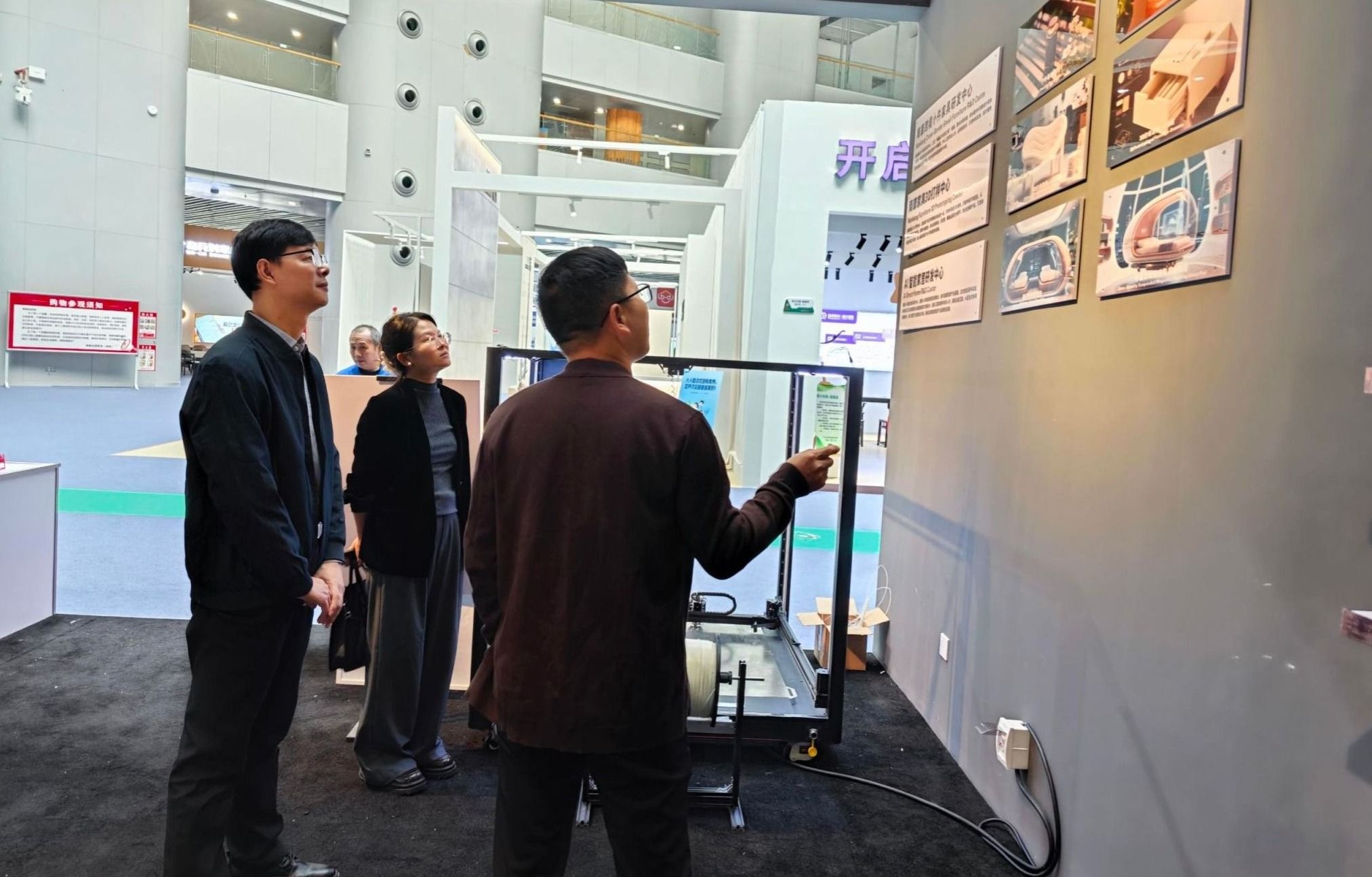 电控系一行实地参观了AI智能家居产品研发实验室和家具新中心展示平台,详细了解了家居智能化技术的研发方向、产业应用场景与行业转型趋势。调研期间,与南康区商务局负责同志就校企协同育人、实习实训基地建设等议题进行深入交流,为进一步推进产学研合作达成初步共识。