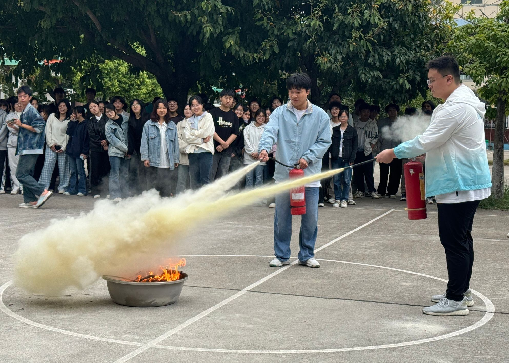 本次演练涵盖应急疏散与灭火器实操两项内容。师生按要求完成疏散后,现场组织了灭火器使用教学与实操训练,有效强化了师生的实战技能。